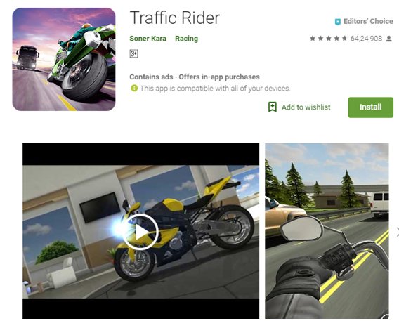 Millions of users have downloaded the mobile app version of Traffic Rider from the Google Play Store.